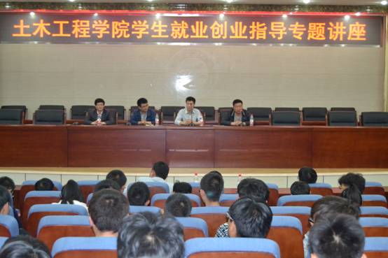 4月28日下午,土木工程学院在图书馆学术报告厅成功举办了大学生就业指导专题讲座。甘肃龙洲建设咨询管理有限责任公司总经理、甘肃开晟建筑建筑装饰设计工程有限责任公司总工程师蔚龙, 长城建设集团第八工程公司项目经理助理余辉,二十一冶建设有限公司项目经理汪建文三位往届优秀毕业生结合工作经历详细讲述了自己对本专业知识技能、专业学习的理解和认识,分享了各自的创业历程和今后的职业生涯规划,勉励同学们珍惜在校学习机会,刻苦学习,积极参加实践活动。三位毕业生还就择业面试技巧谈了自己的感悟与认识。