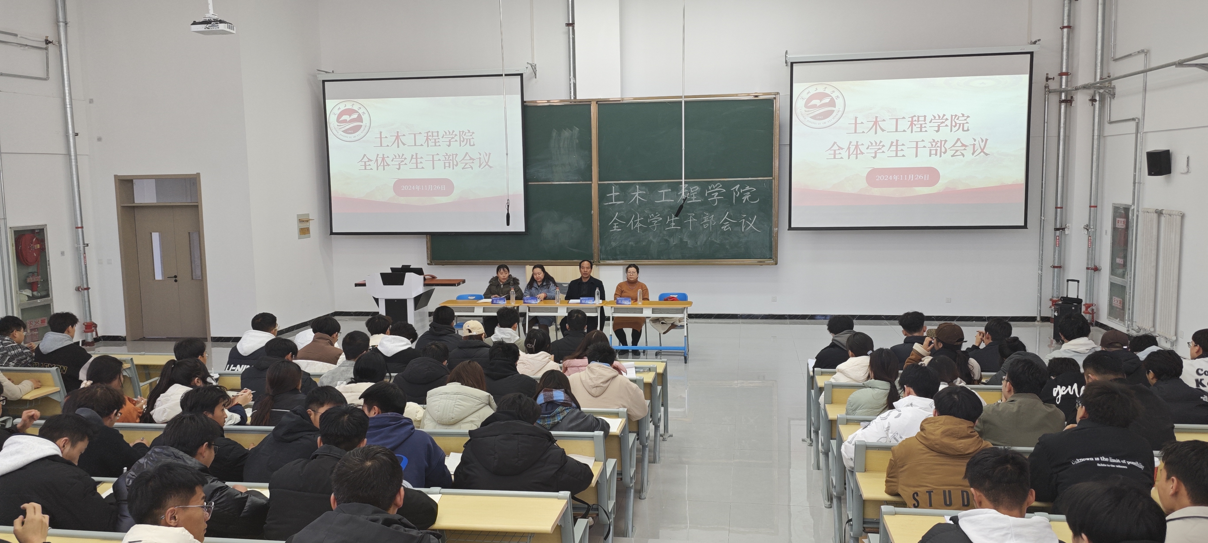 为进一步提升学生干部的综合素质,增强学生干部的引领力、组织力、服务力,明确工作职责,制定工作目标,打造一支成绩优、作风硬、能力强的学生干部队伍,11月26日,土木工程学院召开了2024-2025学年全体学生干部会议,土木工程学院党委书记李志刚、党委副书记马索菲娅、学工办主任王玮瑜、团委书记孟雅喆、全院学生干部参加会议。