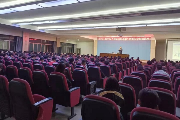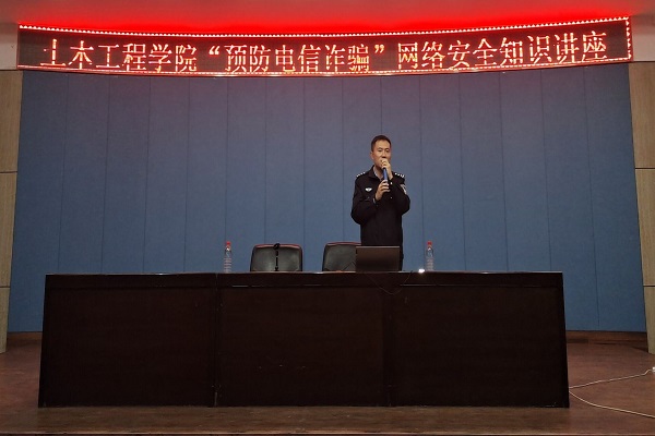 随着现代电信技术的飞速发展,在享受通讯的快速便捷之余,电信诈骗也在迅速蔓延。为了普及防范知识,加强学生对电信诈骗的防范意识,保护大家的人身和财产安全,土木工程学院于2020年11月5日晚7:30在一教八楼举行了“预防电信诈骗”网络安全知识讲座。七里河反电信网络诈骗大队副主任朱毅斌担任主讲,20级全体同学参加了此次讲座。