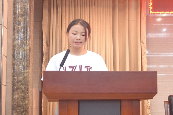 最后由造价20-2班闫敏代表新生发言。代表全体新同学,向院领导,老师和全体同学承诺,一定严守校纪校规,勤奋刻苦学习,讲究文明礼貌,注重团结协作,做一个好学、敬业、德高、技强的大学生。