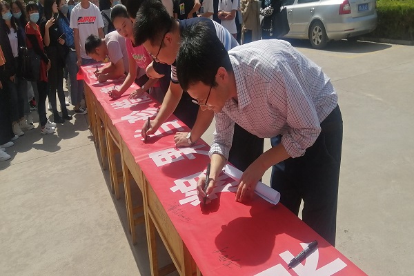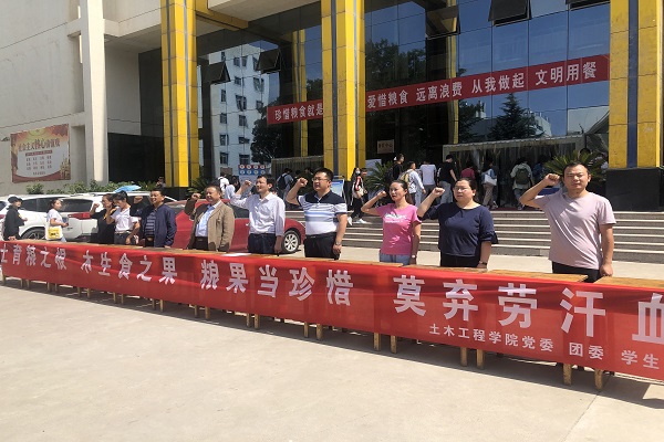 为深入践行习总书记关于制止餐饮浪费的重要讲话精神,引导广大师生群众自觉践行社会主义核心价值观,弘扬中华民族的传统美德,加强节约粮食的意识。9月7日中午12:00,土木工程学院在北校区食堂门口举办了“节约粮食,厉行节约,反对浪费”主题宣誓签字活动。土木工程学院党委书记张明朗,院长马守才,副院长袁尚科、任永忠,团委书记臧文茜、学工办各年级辅导员、18.19级班委及学生会全体成员参加了此次活动。