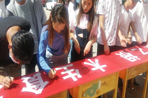 活动中,张明朗就“节约粮食,厉行节约,反对浪费”宣读了倡议书,倡议大家勤俭节约,反对浪费,要求同学们积极行动起来,促进资源合理利用,推进制止餐饮浪费,推动全校上下形成勤俭节约的文明风尚。随后,在场师生共同宣誓,承诺做勤俭节约的倡导者、宣传者、实践者和推动者。活动在横幅签字仪式上落下帷幕。