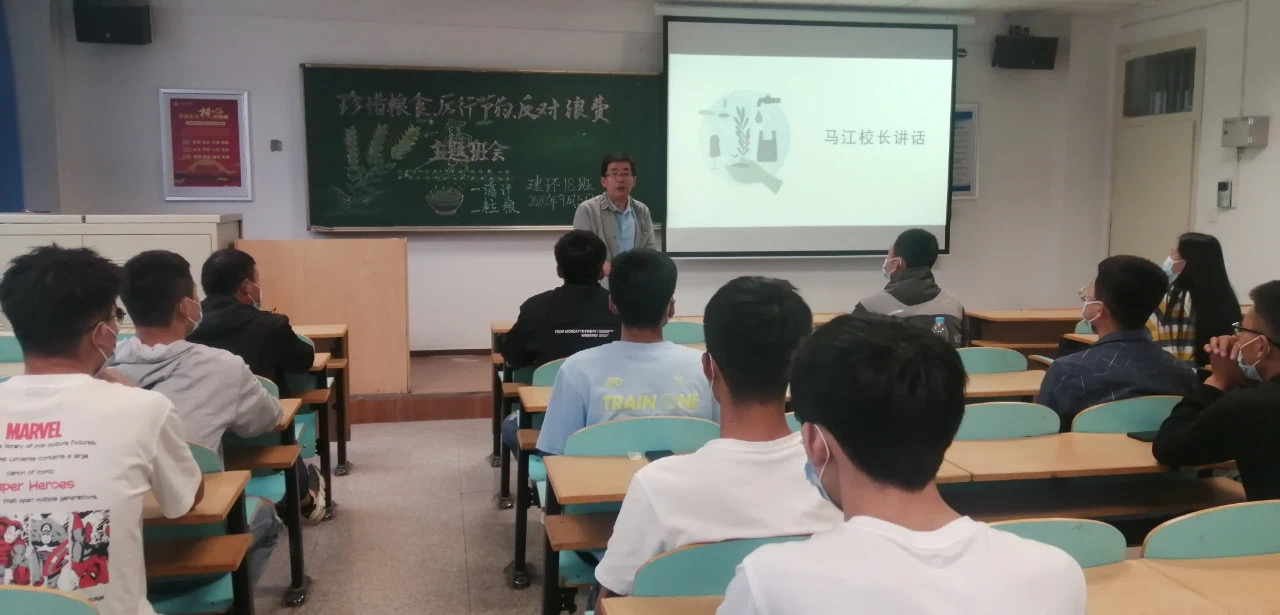 9月5日下午,土木工程学院建环18班开展了“珍惜粮食,厉行节约,反对浪费”主题班会。学校党委委员、副校长马江,土木工程学院党委书记张明朗,副院长任永忠出席班会。