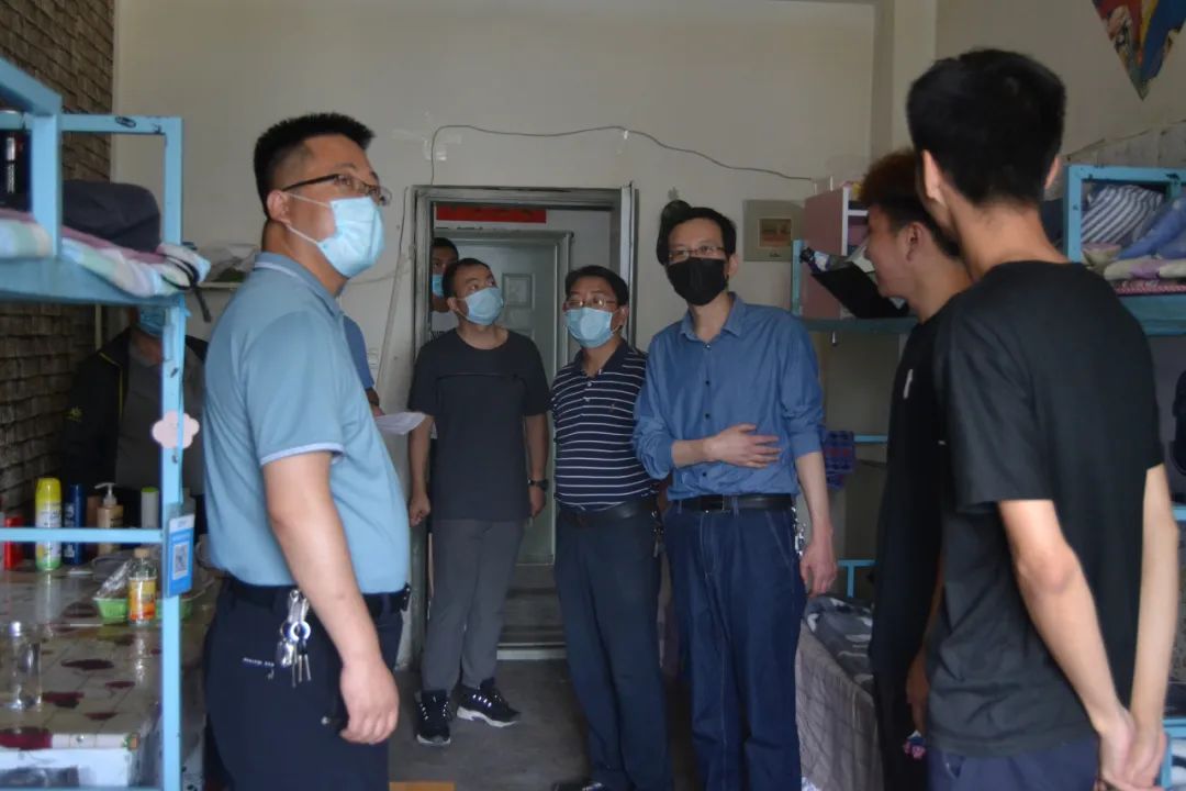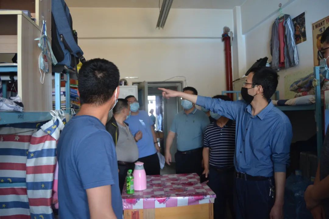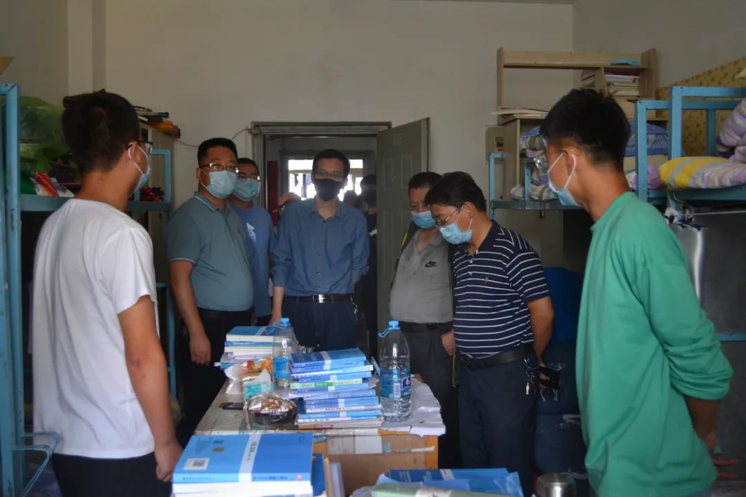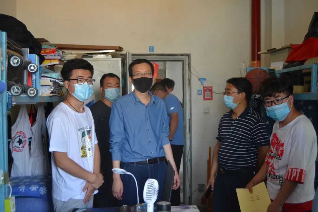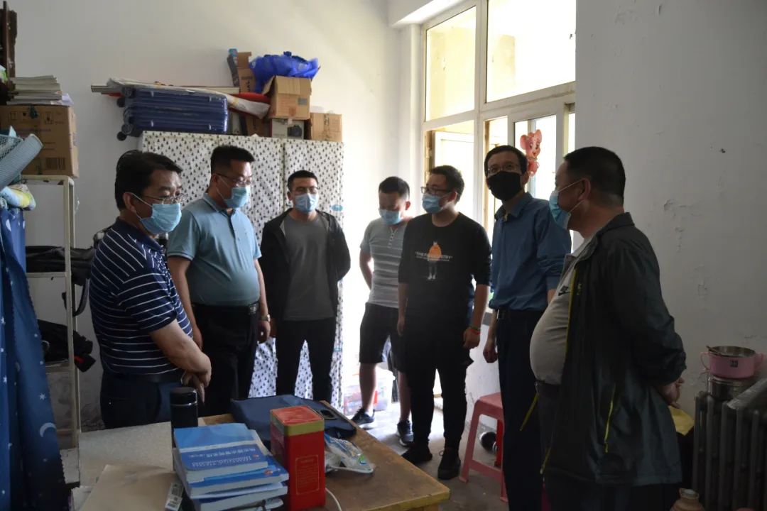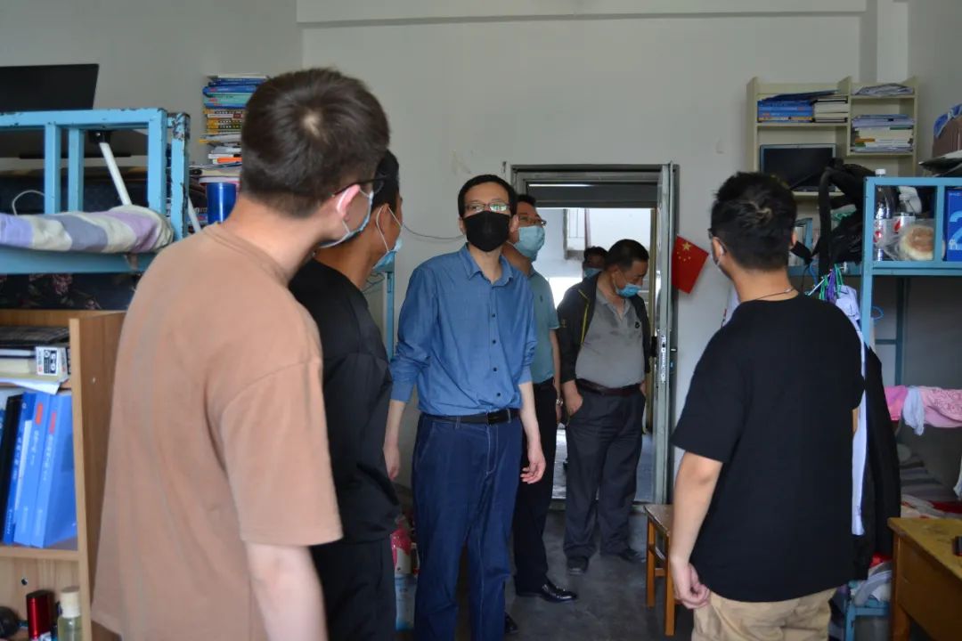 为做好学生返校后的疫情防控工作,调研开学后学生在学习、生活方面存在的困难和急需解决的问题,2020年6月19日中午12点30分,土木工程学院党委书记张明朗,院长马守才,副院长袁尚科、任永忠及17级辅导员周世虎、范玉凤对2017级学生宿舍进行走访。