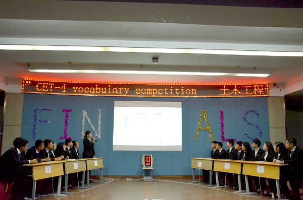 为积极响应学校关于“进一步加强学风建设”的要求,督促我院2019级学生以积极的状态迎接大学英语四级考试,给同学们提供一个自我展示的平台。土木工程学院于2019年11月27日晚19:30:在八楼会议厅举办了土木工程学院第六届“英采杯”英语四级词汇竞赛。