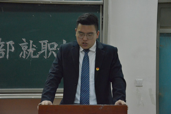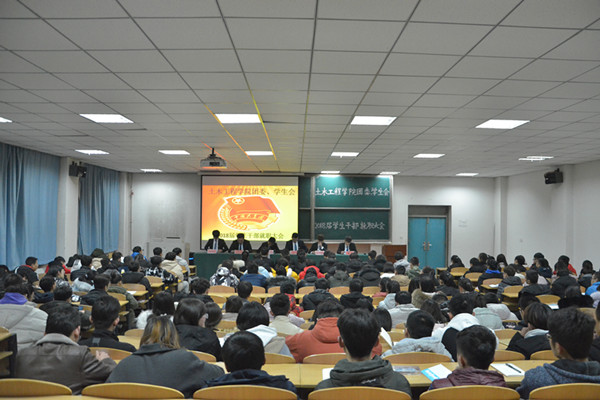 土木工程学院团委副书记邓智升、张昊成,学生会主席马俊成,副主席李国盛、冯继文、戴炜及各部门部长 依次做就职演讲。对前半学期的工作做了简单的总结并制定了相应的工作计划,提出学生干部应该以“完善自我,提高素质,严以律己,宽以待人,助人为乐,服务奉献”的态度来对待学生工作。在学生中积极倡导良好的学风和积极向上的风气,真正发挥学生干部的纽带,引领和监督作用。