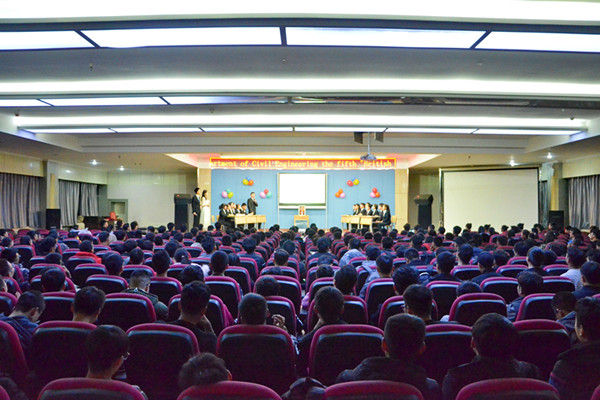为营造我院英语学习气氛,提高我院同学大学英语四级考试通过率,丰富校园文化,土木工程学院于2018年11月29日晚19:00,在第一教学楼八楼会议中心举办了土木工程学院第五届“英采杯”英语四级词汇竞赛决赛。六个代表队18名选手参加了比赛。我院副院长任永忠、院团委书记臧文茜、外教krista、我院17级辅导员龚真文、王生廷及我院18级全体学生观看了本次比赛。