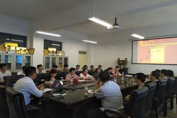 6月5日下午,在学院会议室召开2014级土木工程专业毕业设计推进会暨答辩抽签仪式。副院长任永忠主持会议, 院长马守才、2014级土木工程专业全体毕业设计指导老师、2014级土木工程专业各班班长及学习委员一起参加了本次会议。