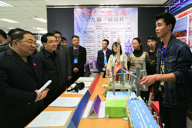 为进一步促进我校大学生科技创新能力,3月28日下午2:00,我校第九届“挑战杯”大学生课外学术科技作品竞赛终审决赛在图书馆学术报告厅举行。来自各学院的多位专家担任本次大赛评委,部分领导及师生前往指导、参观。