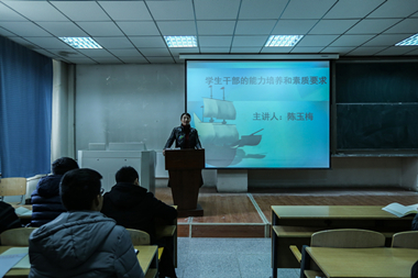 2016年11月29日下午,由土木工程学院举办的为期两周的学生干部培训系列讲座圆满结束。本次参与培训讲课的有副院长陈玉梅,学工办主任吴翼虎,团总支书记臧文茜, 2016级辅导员杨黎黎老师。土木工程学院全体学生干部聆听了系列讲座。