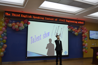 为了提高同学们的英语口语水平,增强英语学习氛围,5月25日晚7点,土木工程学院在新阶梯201举办了第三届英语演讲比赛总决赛,学院邀请了外教Josha 、MJ 及外国语学院部分教师担任大赛的评委,学院副院长陈玉梅、团总支书记臧文茜出席了本次活动。