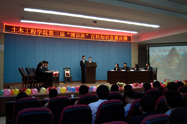 2016年4月19日晚19:00,土木工程学院在一教八楼举行第三届“博识杯”百科知识竞赛决赛,副院长陈玉梅、团总支书记臧文茜、部分辅导员及15级全体学生观看了本次竞赛。
