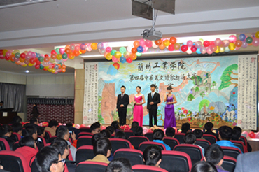 2015年12月16日晚7点,土木工程学院举办第四届“中华美文”诗歌朗诵大赛决赛在一教八楼会议中心举行,本次大赛由校团委主办,土木工程学院承办。副校长李贵山、校团委书记李萍、土木工程学院院长马守才、党总支书记赵万双、副院长陈玉梅等8人担任了大赛的评委。