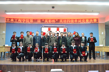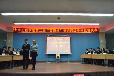 2015年12月2日晚7:30,土木工程学院在一教八楼会议中心举办第二届“英彩杯”英语四级单词竞赛决赛。学院院长马守才、书记赵万双出席了比赛,副院长陈玉梅、外教Josh、M.J及部分教师担任比赛评委。