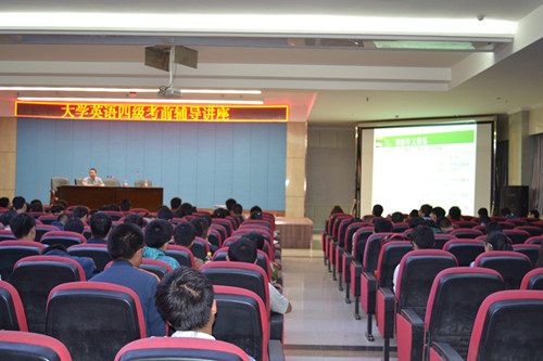 2015年5月6日晚七点,土木工程学院在一教八楼学术报告厅举办了大学英语四级考前辅导讲座,外国语学院副教授夏增亮为学生做了精彩报告,学院副院长陈玉梅主持了讲座。