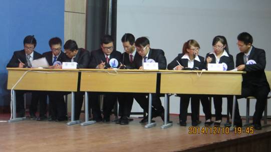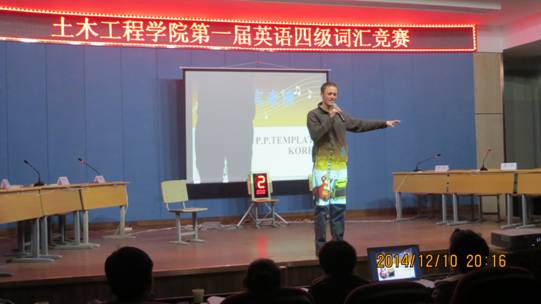 2014年12月10日晚7:00,土木工程学院在一教八楼会议中心举办第一届英语四级词汇竞赛。学院副院长陈玉梅,外教Josh、M.J及部分教师出席本次活动并担任比赛评委。