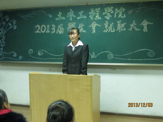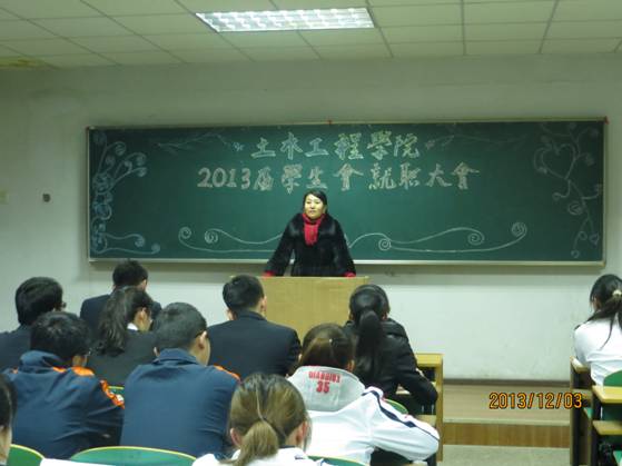 为了充分发挥团总支、学生会的青春活力及工作激情,使团总支学生会成员更加团结,更具有凝聚力,土木工程学院团总支学生会于2013年12月3日晚7:00在一教A607教室举办了“土木工程学院2013届团总支学生会就职大会。学院副院长陈玉梅、团总支书记臧文茜以及全体团总支、学生会成员参加了会议。