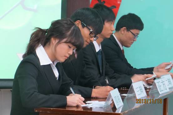 为了培养学生的思辨能力和语言表达能力,营造良好的校园文化氛围,2013年11月19日下午7时土木工程学院新生辩论赛总决赛在新阶梯201隆重举行,学院党总支书记王炜奇,副院长陈玉梅,13级辅导员和全体学生观看了本次比赛。