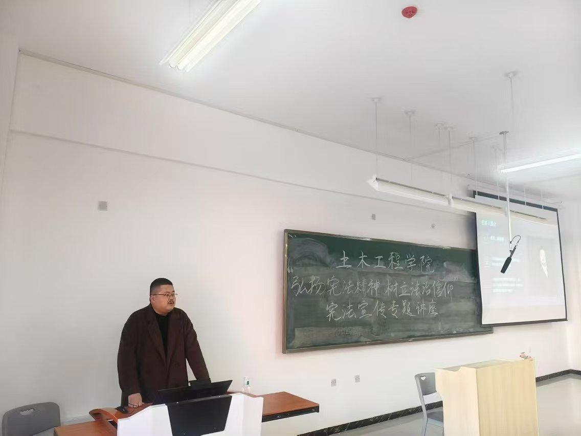 正值第十一个国家宪法日来临之际,为营造“学法,懂法,守法,用法”的良好氛围,提高同学们的法律素养,11月27日,土木工程学院邀请了兰州市律师协会民商事专业委员会委员、青年律师工作委员会委员、甘肃杰垚律师事务所创始合伙人张敬南于公共教学楼D106为全院学生开展普法教育专题讲座。