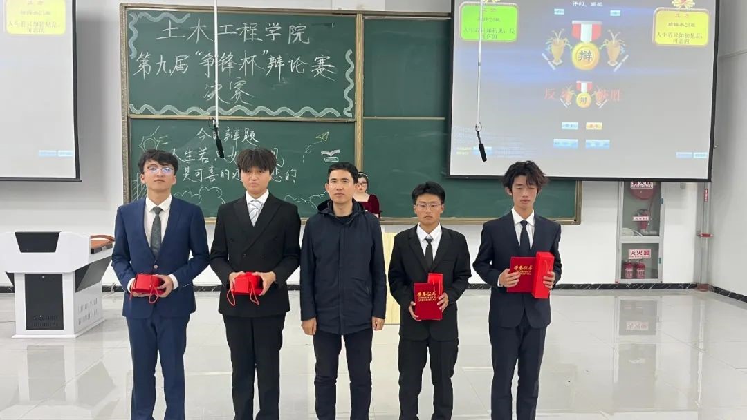 为了锻炼大学生思辨能力、合作能力和沟通能力,丰富学生课余生活,培养学生素质,展现精神面貌。2024年11月8日19:00,由土木工程学院团委、学生会主办,土木工程学院团委办公室承办的第九届“争锋杯”辩论赛决赛在公共教学楼E301举行。本次比赛特邀嘉宾有:土木工程学院副院长高文琪,土木工程学院团委书记孟雅喆,学工办主任王玮瑜,以及各级辅导员,并且邀请优秀辩手荆泽琪、鲁宗艳、魏心怡担任评委。其中正方辩题:人生若只如初见是可喜的 ;反方辩题:人生若只如初见是可悲的。经过述词环节,双方辩手迅速进入状态,情绪激昂,点燃了全场;经过言词的犀利交锋和思想的激烈碰撞,最终由给排水24班夺得魁首。其中最佳辩手则是给到给排水24班沙志龙,建环24班虽未登顶,却无遗憾,拼搏的历程已铸辉煌,自信永在心中闪亮。