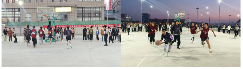 哨声兀起,土木工程学院和电子信息学院新生篮球赛于2024年11月6日18:10在篮球场热火朝天的氛围中拉开了序幕。球员在篮球场上顽强拼搏,力争上游。最终,土木工程学院以21:40的好成绩战胜电子信息学院。