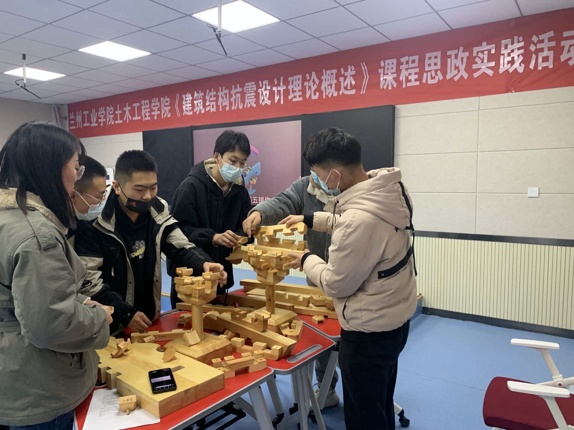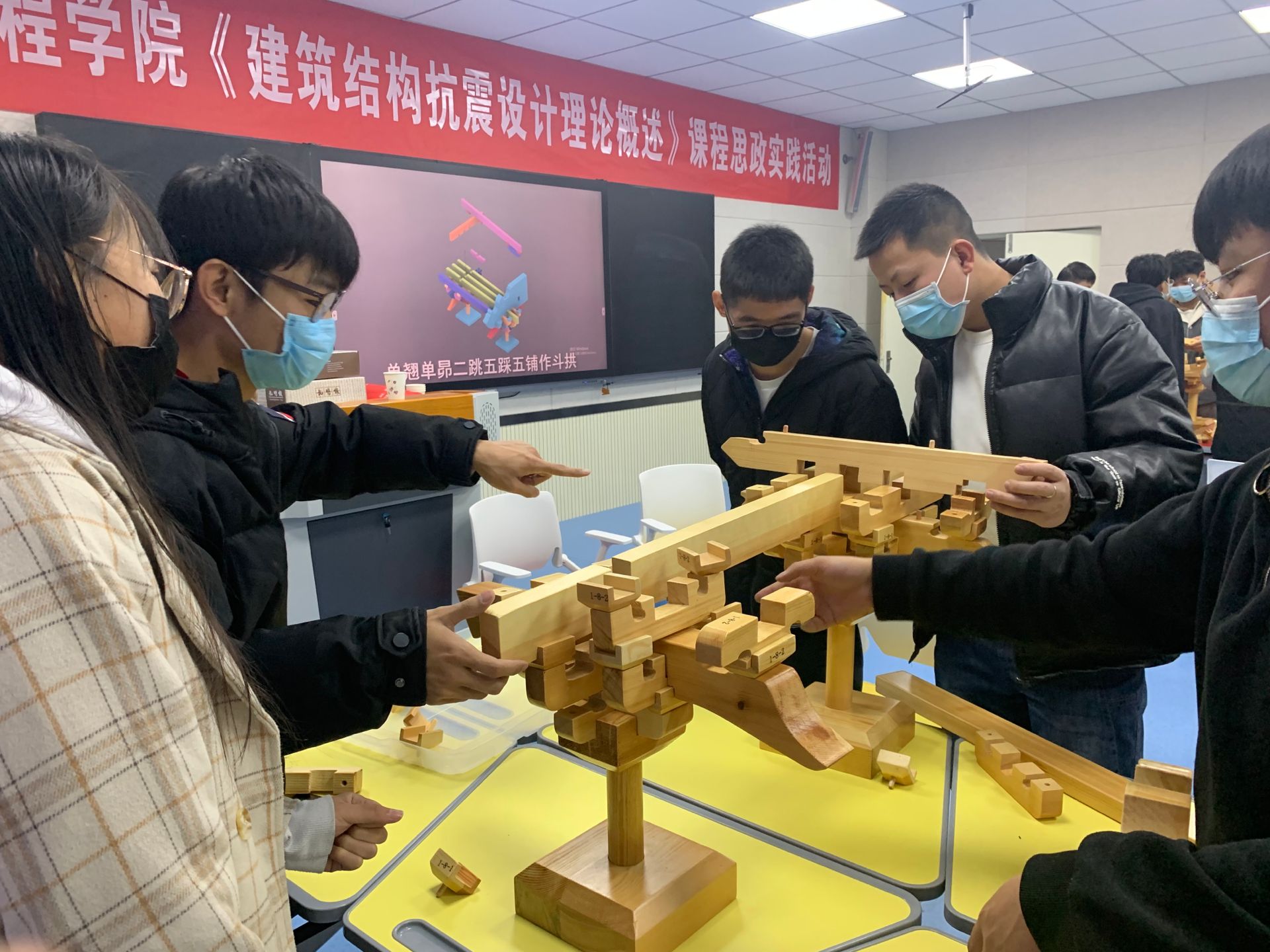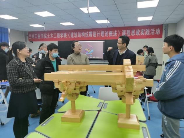 讲座期间,学院领导张明朗书记进行了参观,并与老师和学生进行了学科学习的交流。通过本次讲座,使学生了解了中国古代建筑中蕴含的抗震原理,深刻的感受到古人的智慧与创造力,激发了学生们强烈的文化自信和民族自豪感。通过动手复原斗拱活动,使学生们了解了古代木结构构件的搭建方式,提高了学生的动手能力、思考能力及团队协作能力,激发了学生们精益求精的工匠精神。