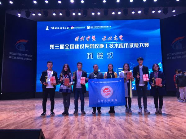 2018年11月1日至4日,第三届全国建设类院校施工技术应用技能大赛在江苏徐州开赛。经过激烈角逐,我校6名大学生张珂凡(指导教师:王一举、王红)、何浩宇(指导教师:马索菲娅、刘蒨)分获二等奖,县国栋、何玮(指导教师:王一举、王红),王丽娜、王栋(指导教师:王一举、王红)分获三等奖。
