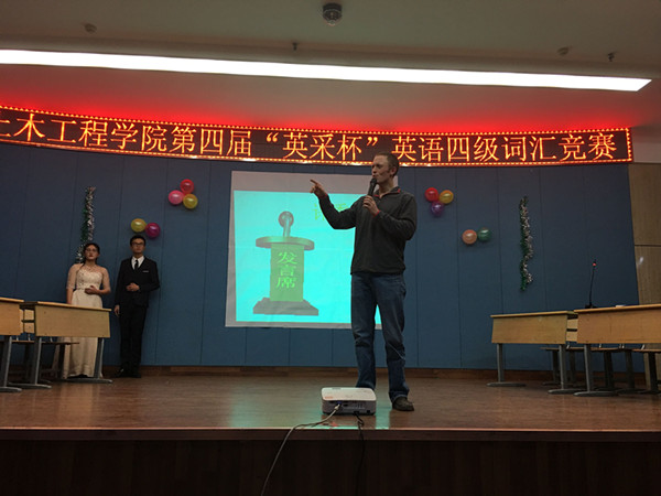 2017年11月30日晚7:30,土木工程学院在北校区一教八楼会议中心举办了“第四届‘英采杯’英语四级词汇竞赛”决赛。外教Josh学院副院长陈玉梅等老师出席比赛并担任评委,学院17级全体学生观看了比赛