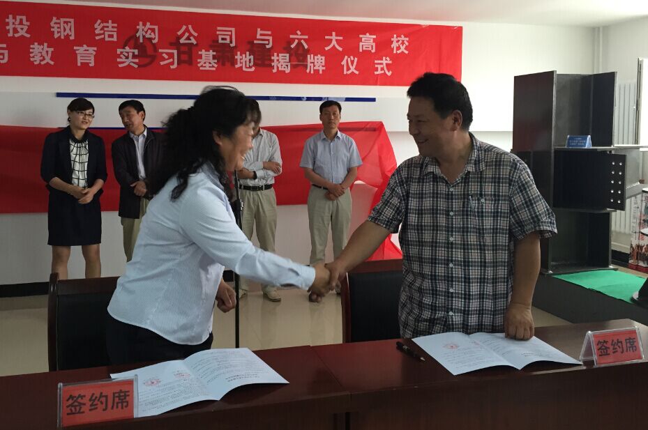 6月24日上午,由甘肃建投人力资源处组织,甘肃建投钢结构公司与包括我校在内的省内六所高校在兰州新区甘肃建投钢结构公司所在地签订建立科研与教学实习基地协议,并进行科研与教学实习基地揭牌仪式。甘肃建投钢结构公司董事长马建峡、甘肃建投总公司人力资源处处长王雅秋、甘肃建投钢结构公司总经理吴晓燕等出席仪式。我校土木工程学院院长马守才教授参加了签约仪式。