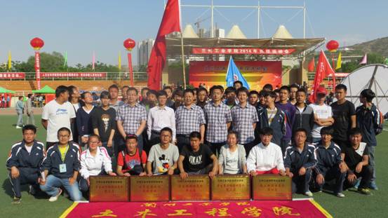 “兰州工业学院第二届田径运动会” 于2014年5月15日至16日在南校区体育场隆重举行。土木工程学院师生踊跃参赛,表现出了良好的精神风貌。最终获得了学生团体总成绩第二、学生男子组总成绩第三、学生女子组总成绩第三、教工团体总成绩第四的好成绩, 还获得了教工组体育道德风尚奖。本届运动会上,我院运动员在学生组4×100米接力中打破校记录,建工12-1班的张泰同学在学生男子200米项目中连续两次打破校记录。