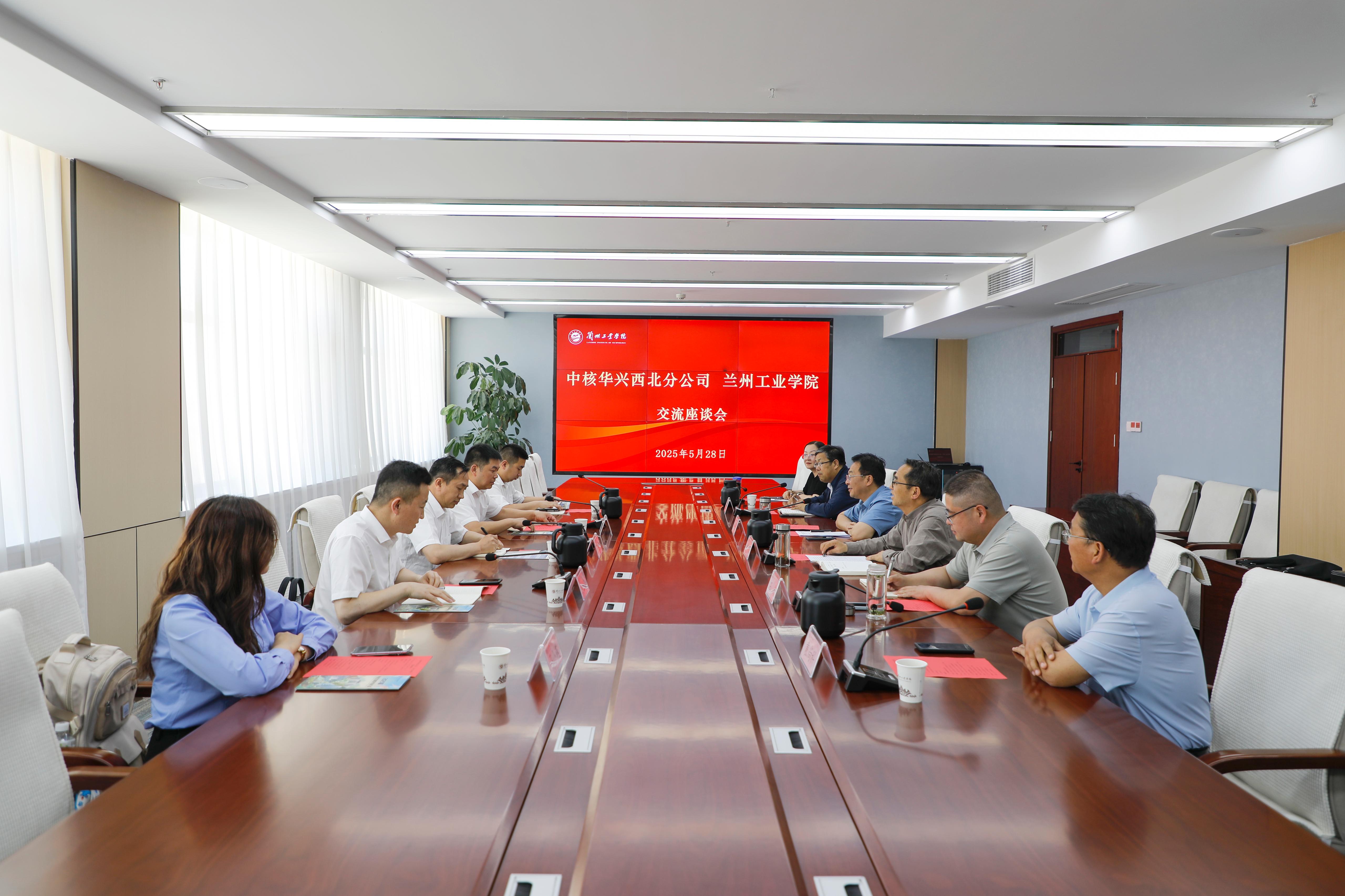 刘新辉代表学校对周海军总经理一行表示热烈欢迎,并感谢中核华兴西北分公司长期以来在学生实习、就业等方面给予的支持。希望双方以此次座谈会为契机,建立常态化沟通机制,在人才联合培养、科研平台共建、毕业生就业服务等方面深化合作,共同打造“产教融合、协同育人”的典范,为区域经济社会发展和国家战略需求贡献力量。