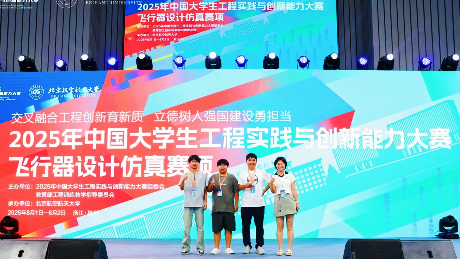 8月5日,2025中国大学生工程实践与创新能力大赛全国总决赛在杭州举行。来自417所高校的1135支队伍同台竞技,由我院汪宏,石文斌,何鹏程三位同学组成的参赛团队,凭借在“飞行器设计仿真”赛道的出色表现,荣获全国二等奖,实现了我校在该项赛事中国家级奖项的新突破!