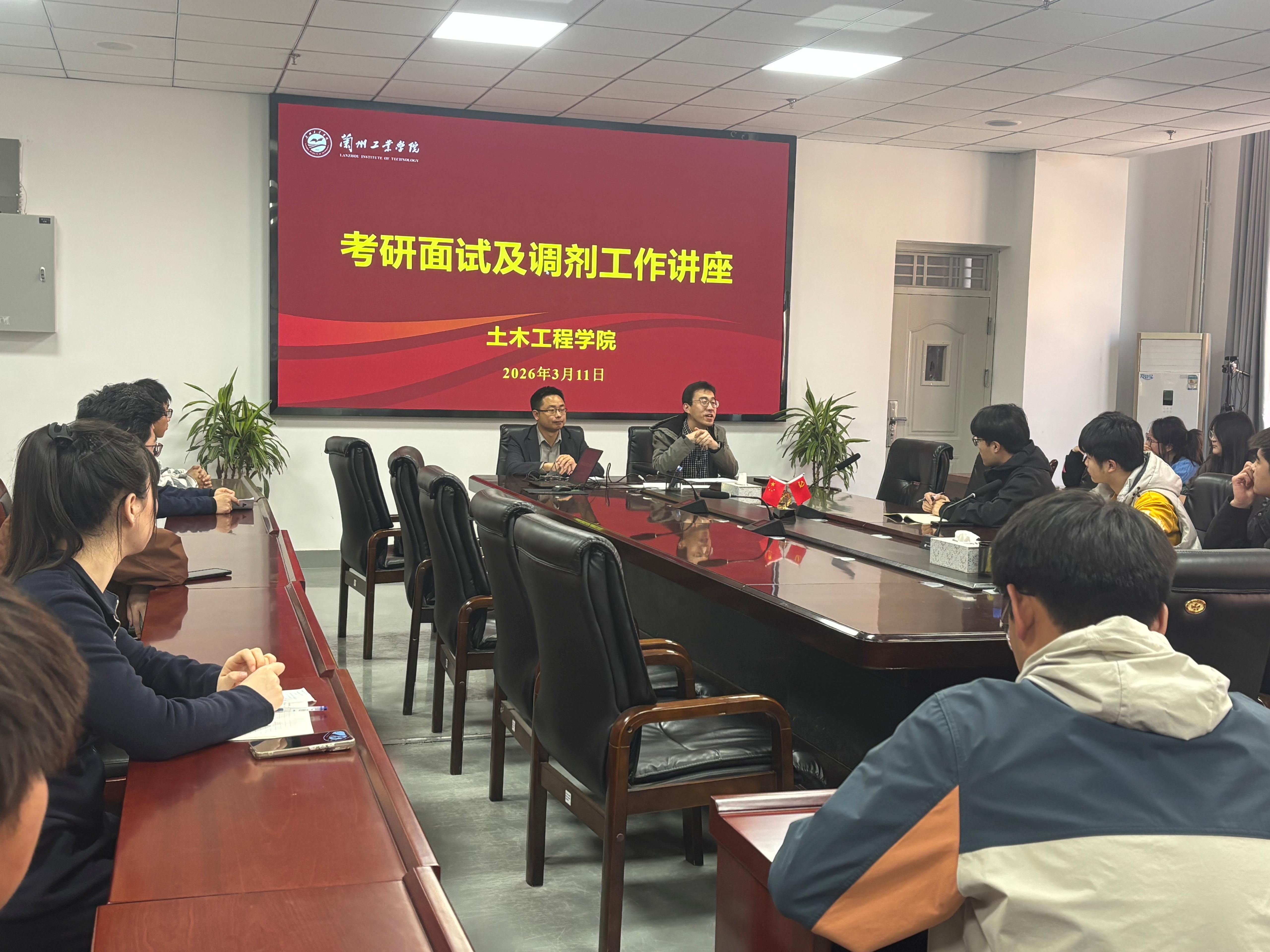 为助力考研上线学子顺利通过复试、精准把握调剂机会,3月11日下午,土木工程学院于学院会议室举办考研上线学生面试技巧及调剂工作讲座。本次讲座邀请兰州理工大学教授、博士生导师张明礼,兰州交通大学教授、博士生导师张延杰,与学院各系主任组成指导团队,为考研上线学生答疑解惑。