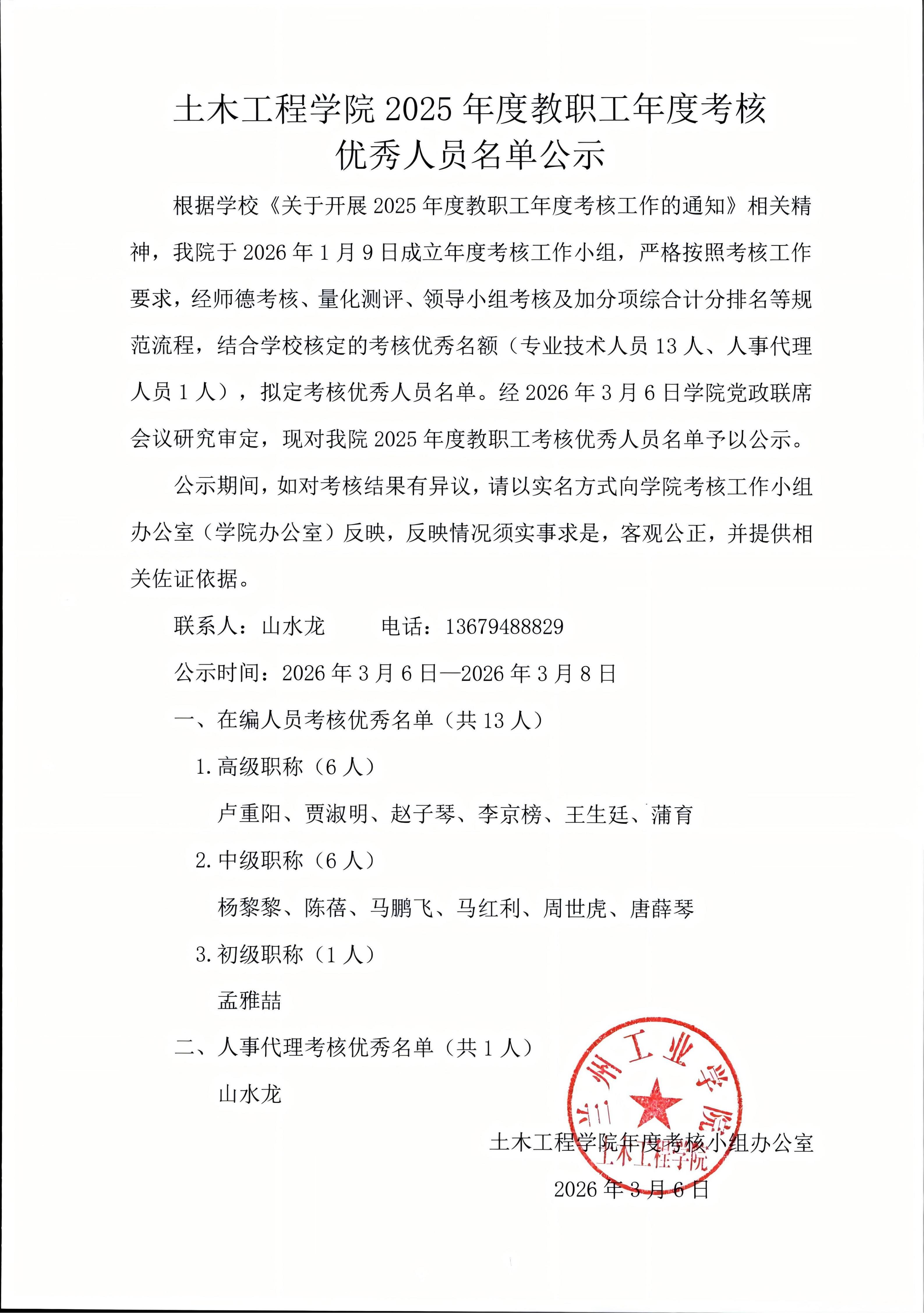 2026届甘肃省普通高等学校优秀毕业生和三好学生(兰州工业学院土木工程学院)名单公示